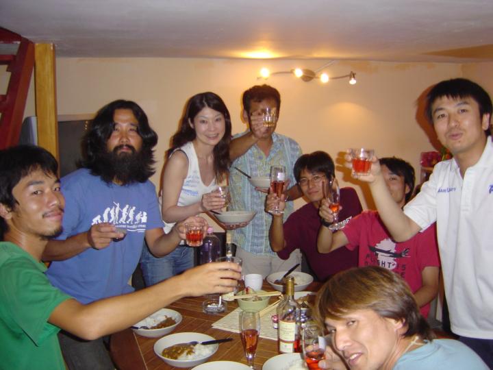普通は各自が調理して食事を作るのだが、宿泊客が多い時は誰ともなしに「今日は皆で食べましょう」となり、宿泊者で協力して料理を作りそれを一つのテーブルを囲んで食べようになる。