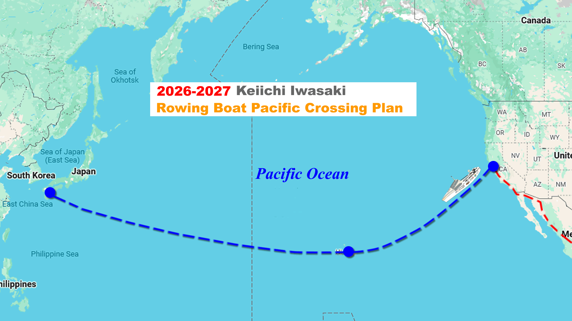 この太平洋横断は簡単に説明すると、この25年に及ぶ旅行記に最終章になり、アメリカから日本へ向けて手漕ぎのボートで戻るという計画になります。